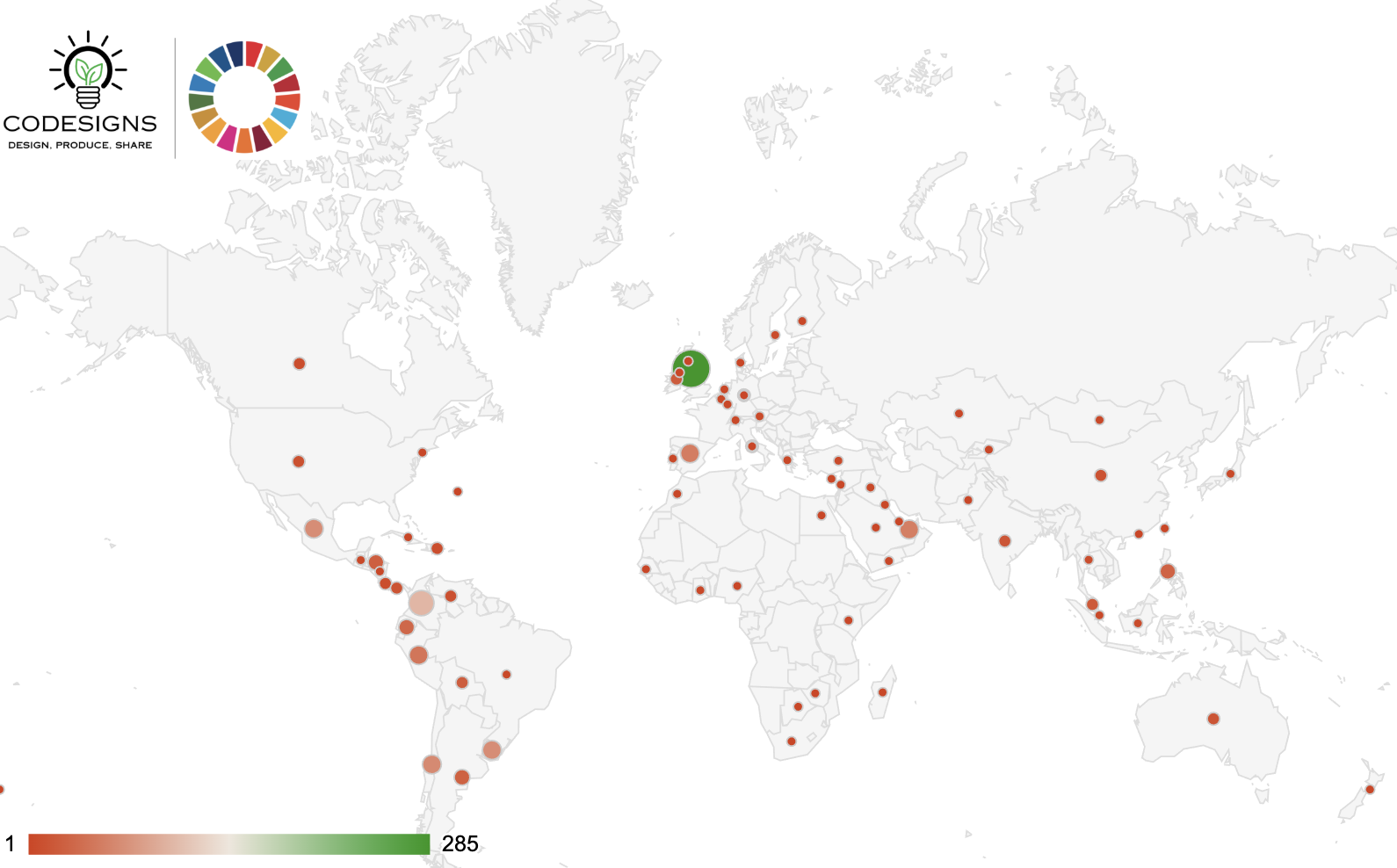By June 2025, the CoDesignS ESD Toolkit had been downloaded in 83 countries, as illustrated in the map below: