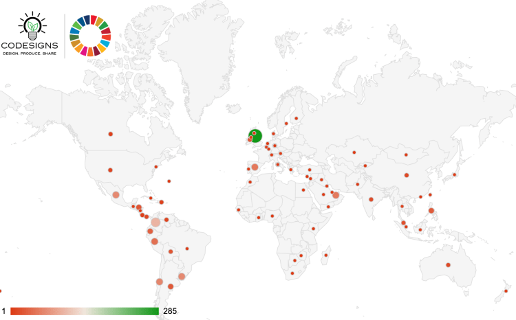 By June 2025, the CoDesignS ESD Toolkit had been downloaded in 83 countries, as illustrated in the map below: